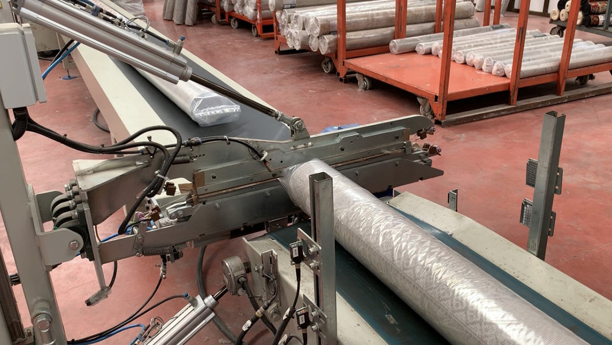 PVC kaynak ve kesim makinesi, halı imalat sektöründe üretilen rulo sarım ve ambalajlama işlemi gerçekleştirilmiş halıların ambalaj kenarları mühürlenip, fire kısımlarının kesilip atılmasından sonra depolama veya satışa hazır hale gelmesini sağlayan makinedir.