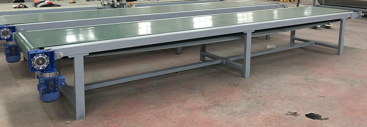 Konveyör band, halı kenarı yapıştırma makinesi ile bağlantılı yada bağlantısız olarak çalışabilir. Ayrıca Koveyör band hız kontrol özelliğine sahiptir.