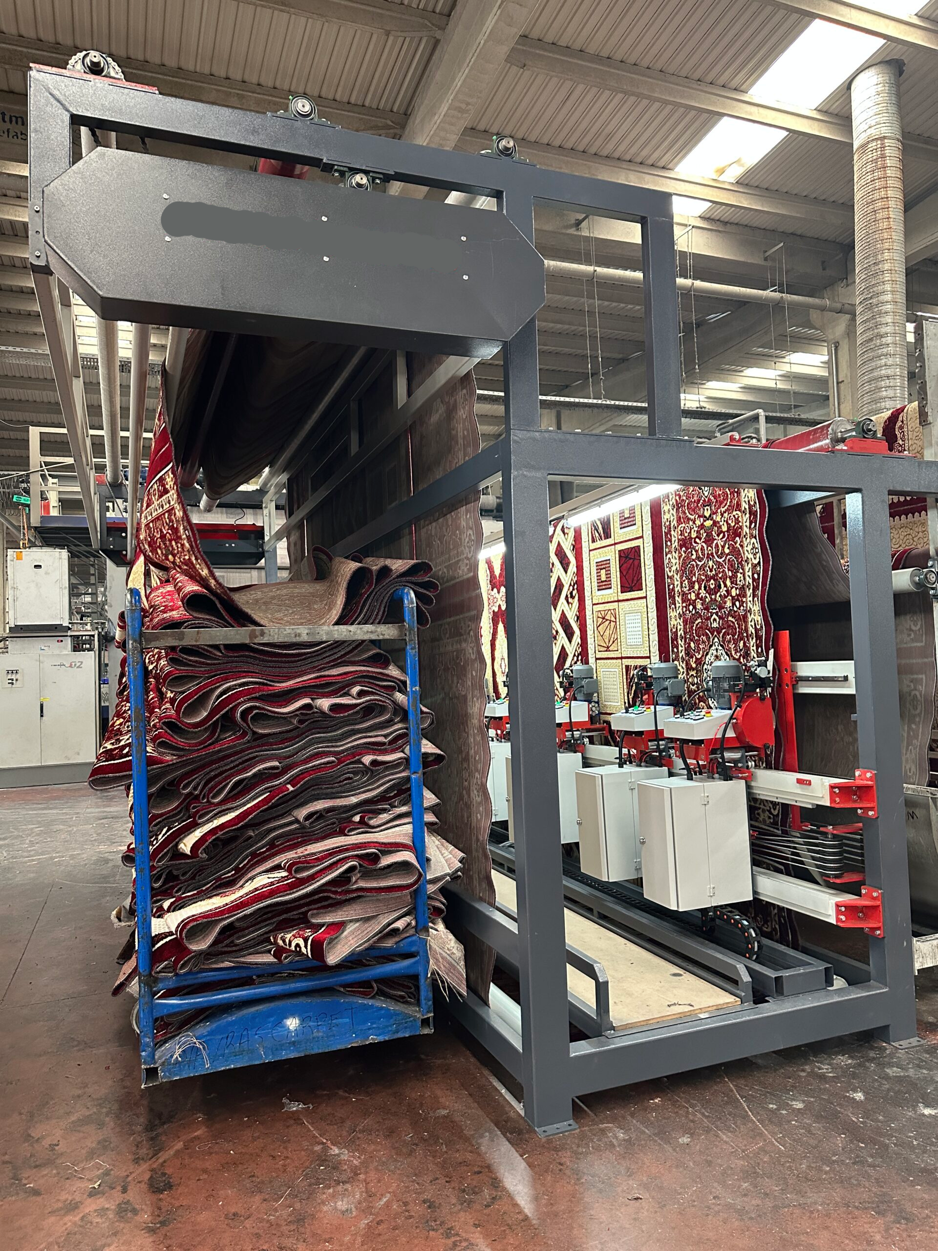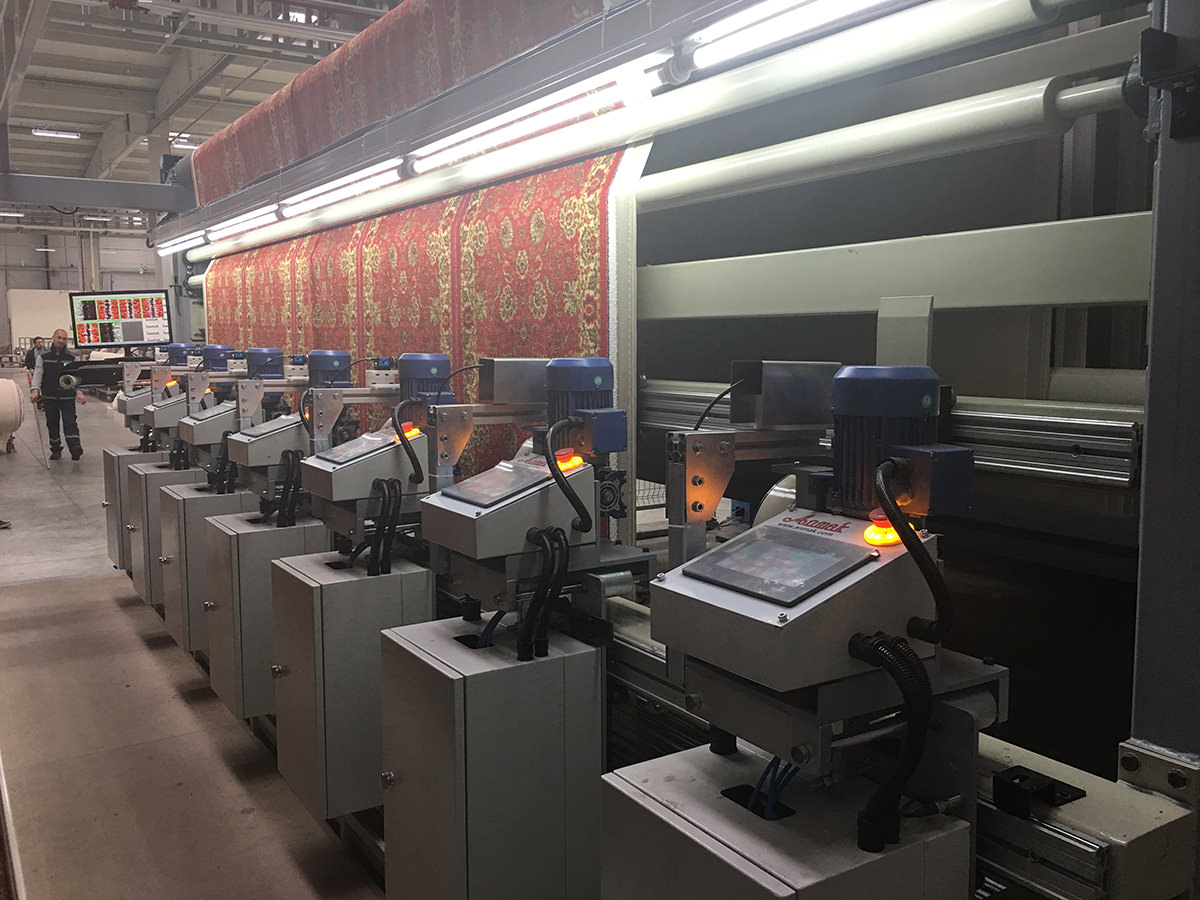 Kameralı halı dik kesim makinesi, dokumadan çıkan halıların üzerinde bulunan ayırma çizgilerini kesme ünitelerinde ki özel kameralar vasıtasıyla takip ederek düz bir şekilde hız kontrollü olarak kesilebilmesine olanak sağlar.