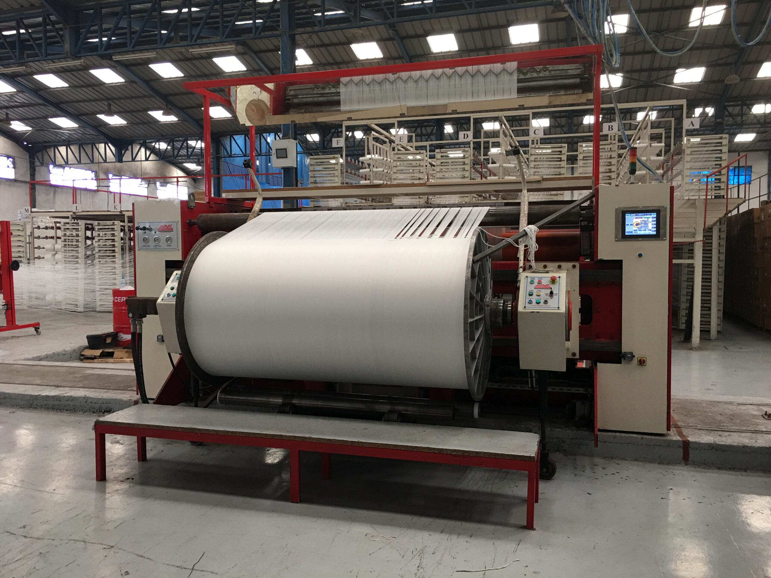KontrolPLC tarafından kontrol edilen makinenin; sağ tarafında kullanımı kolaylaştıran dokunmatik ekran bulunmaktadır. Hız kontrolü, iplik kontrolü, metraj kontrolü vs. görülebilir. |